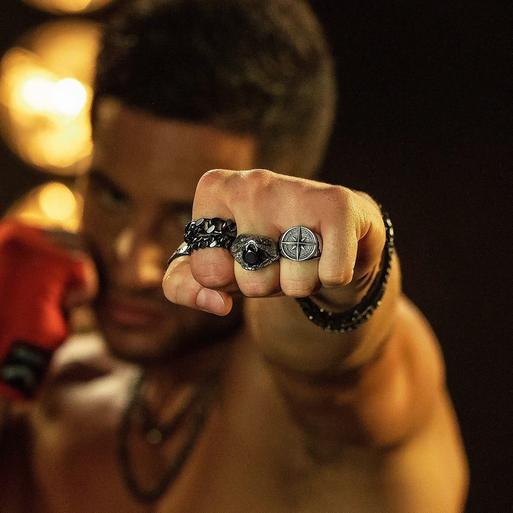 Anello Zancan in argento 925. L'anello riprende la testa di Buddha, incarnando quindi un forte significato spirituale. Il gioiello fa parte della collezione Vintage, caratterizzata da un particolare trattamento naturale all'ossido di zolfo che dona questo particolare effetto invecchiato. Questa tecnica permette di donare ad ogni gioiello un aspetto unico, mai replicabile. L'anello è completamente realizzato a mano in Italia ed ha un peso di 13.00gr.