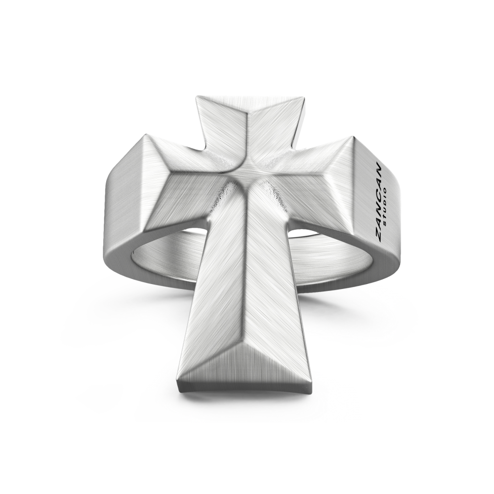 L'anello Holy, con finitura satinata, è caratterizzato da una croce bolded che si estende oltre il gambo dell'anello.