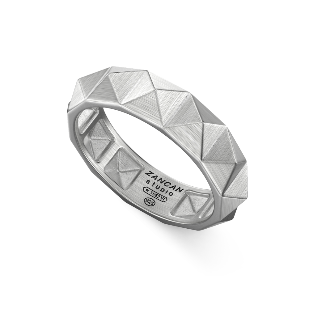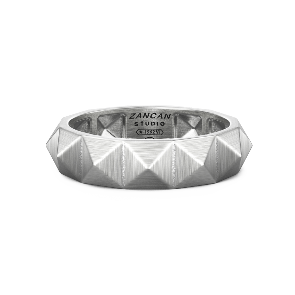 Anello a fascia con finitura satinata e borchie in grassetto.