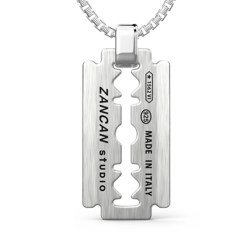 La collana è caratterizzata da un pendente a forma di lametta con finitura satinata.