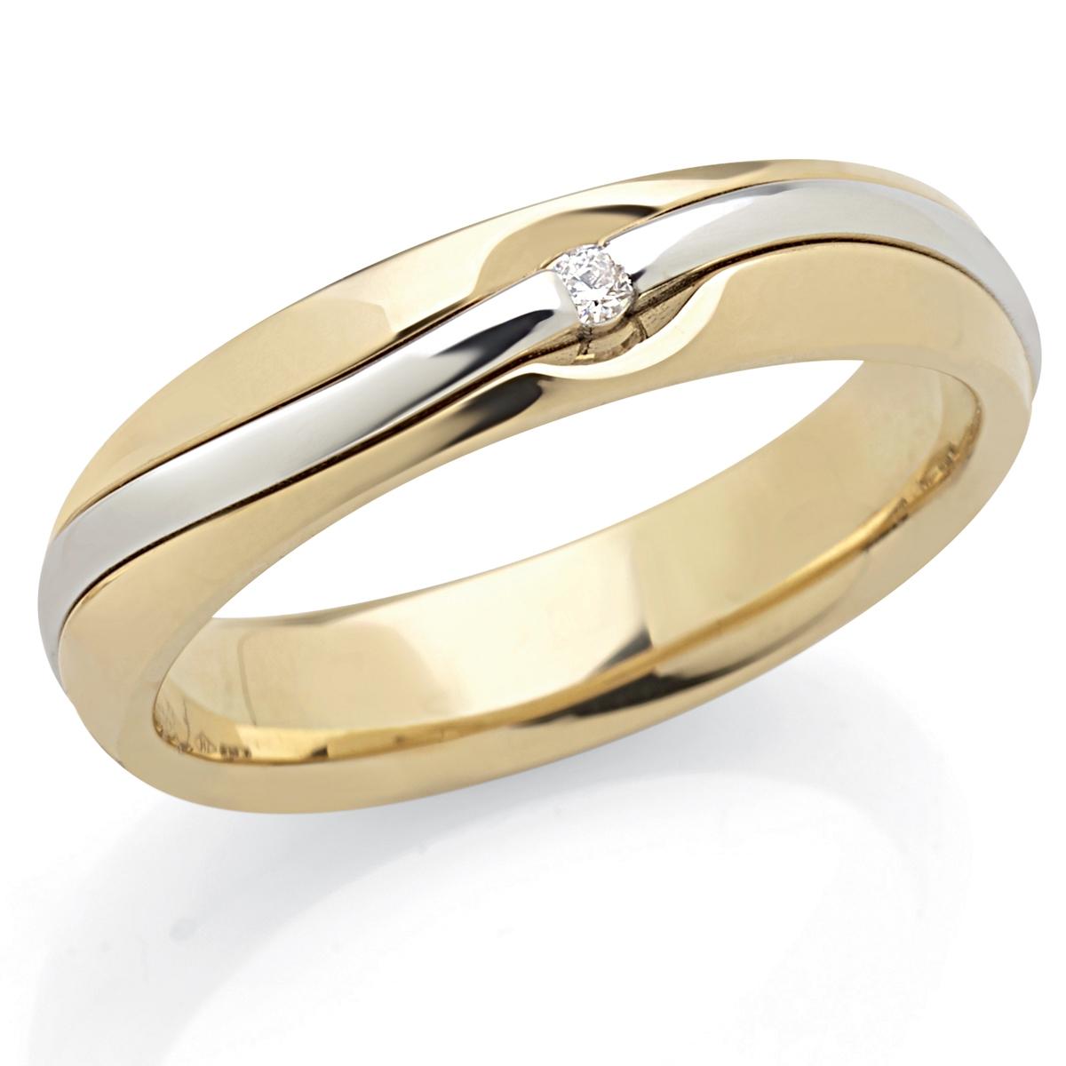 Fede in Oro 18kt bicolore disponibile in Oro rosa oppure giallo con inserto ad onda in Oro bianco centrale e finitura lucida. Sull’inserto bianco dell'anello è incassato un Diamante naturale taglio Brillante. Anello largo 4,5 mm, ordinabile in tutte le misure e personalizzabile con incisione interna gratuita.