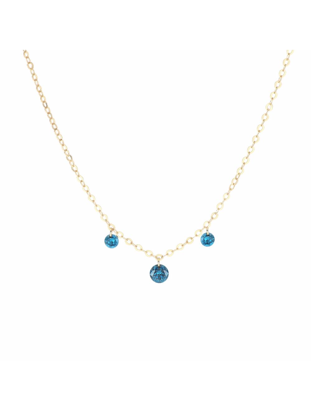 Girocollo con tre diamanti nudi colorati blu realizzato in oro giallo 18 carati.