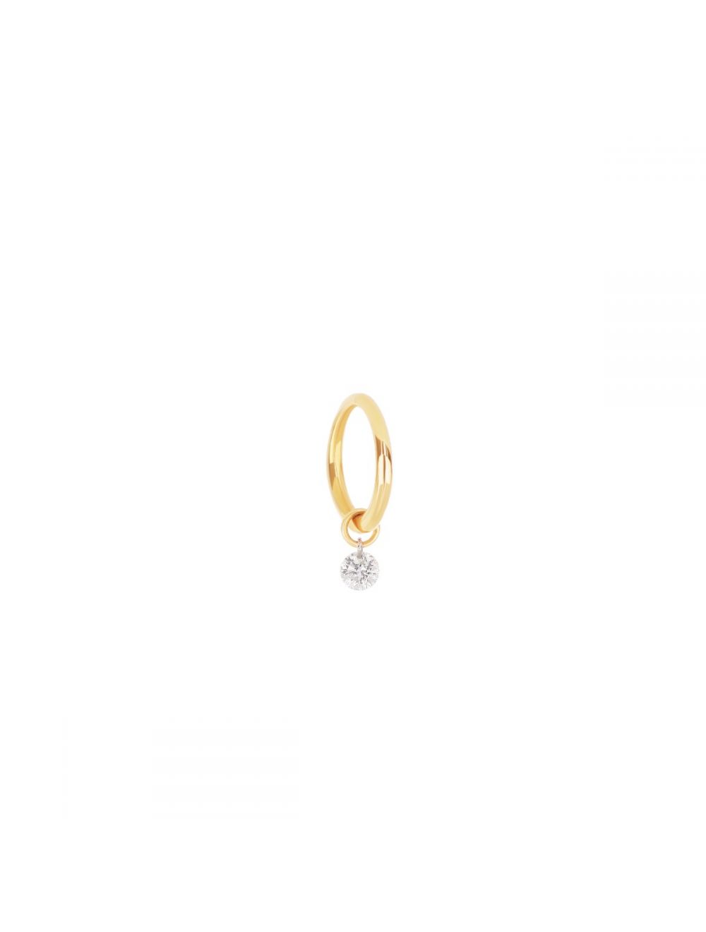 Il piercing presenta un diamante nudo taglio brillante pendente sospeso nel vuoto senza castone di 0,05 carati.