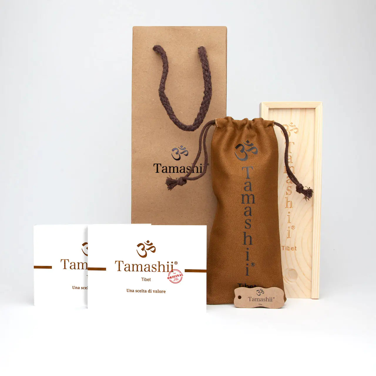 Ogni articolo Tamashii® è realizzato per durare nel tempo se vengono rispettate le indicazioni di base sull’uso e la manutenzione.  Tutti i materiali utilizzati sono naturali e possono subire alterazioni se esposti a sostanze come cosmetici, profumi, cloro, acqua dolce, salata e termale. Alcune pietre, ricche di sali minerali, possono cambiare a seconda del pH della pelle.  Anche il gioiello Tamashii®, come tutti i capi di abbigliamento, accessori o calzature, può subire usura legata all’indosso continuativo. Ad esempio a contatto con l’acqua o in ambienti particolarmente umidi, il cordino subisce continue variazioni di volume (secco-umido) favorendo la rottura delle fibre che lo compongono.  È sconsigliato l’utilizzo anche durante l’attività sportiva o lavorativa soprattutto se in condizioni deterioranti (esposizione ai raggi UV ed a temperature elevate).